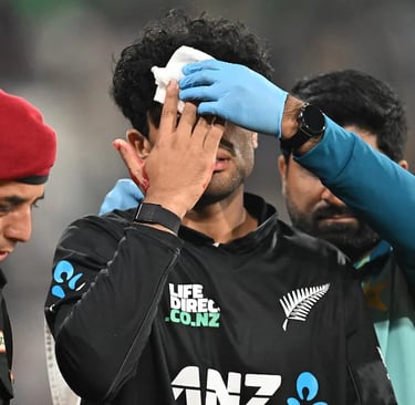 The injury left Ravindra bleeding, and he had to leave the field for medical attention. After the incident, there was a heated debate in the cricketing community, with some blaming the floodlights, while others believed it had nothing to do with the lighting conditions. Tayyab Tahir, however, strongly dismissed the speculation and defended the conditions in Lahore.